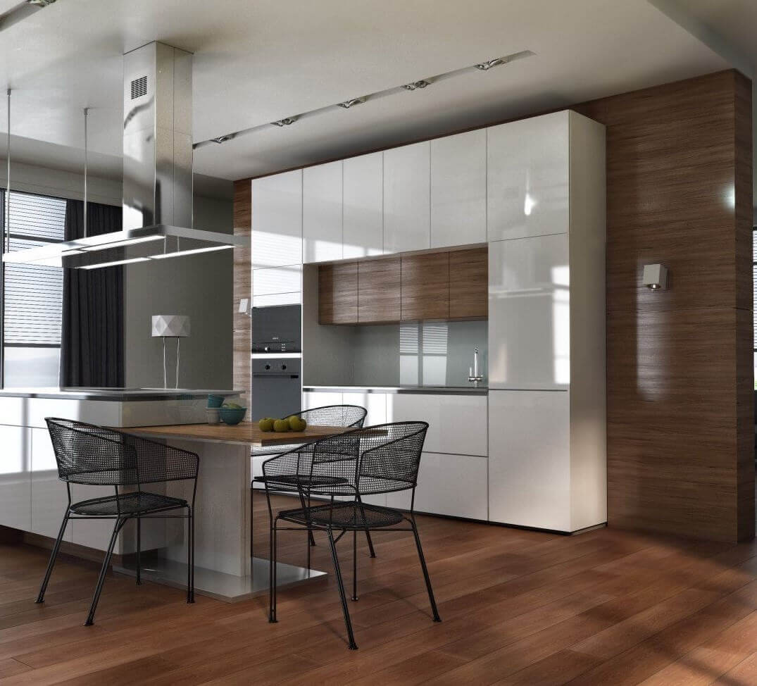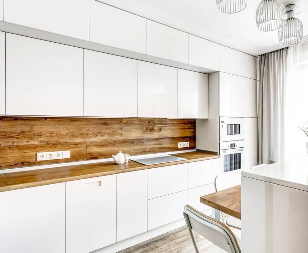 • Для кухни следует выбирать практичные материалы, которые хорошо переносят влажность, перепады температуры, легко очищаются от загрязнений и выдерживают механические нагрузки. Выбирать вы можете в зависимости от бюджета - более дорогие или бюджетные материалы. Наш специалист проконсультирует вас.