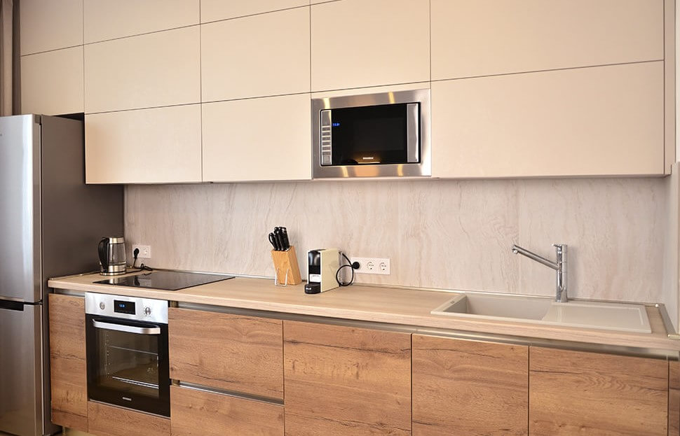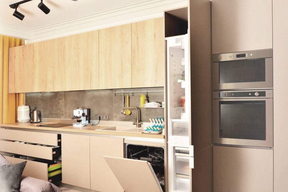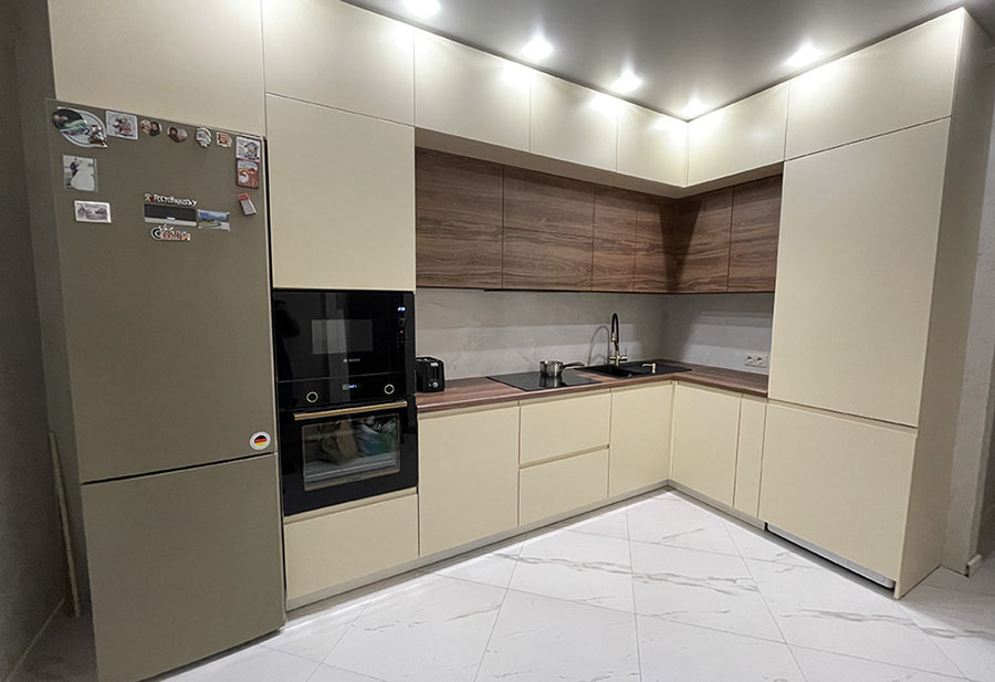 • Да, на этапе установки мастера размещают встраиваемую технику и выполняют ее подключение. Если вы решите заказать кухню по индивидуальным размерам, вы можете не волноваться по остальным вопросам, так как мастера нашей компании помогут их решить.